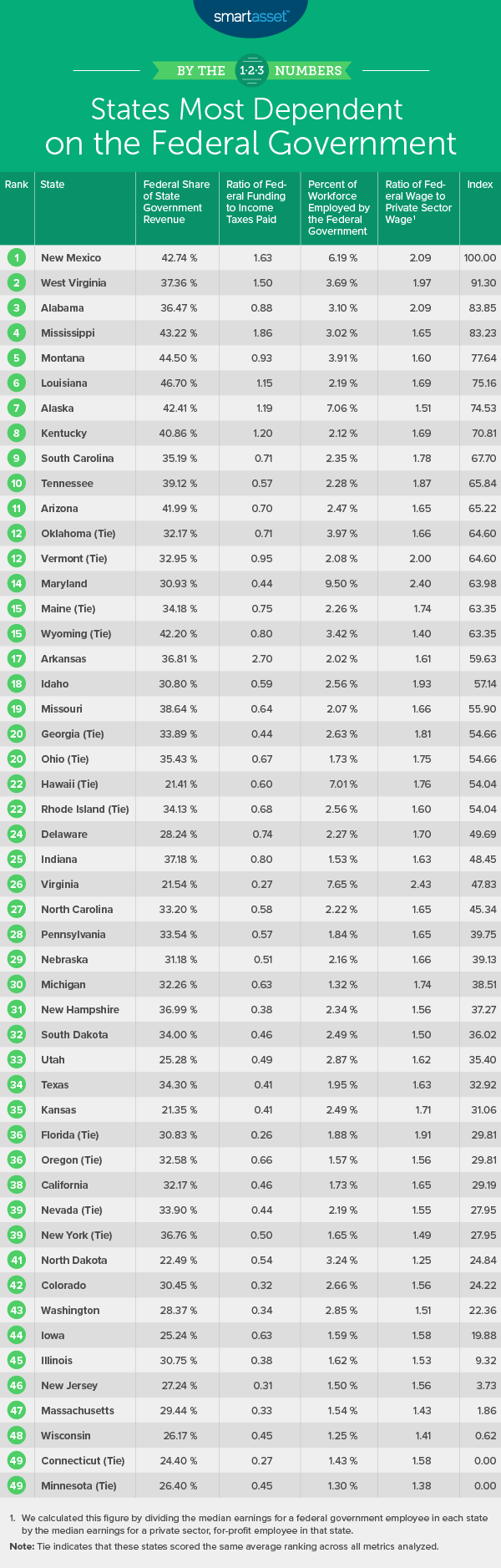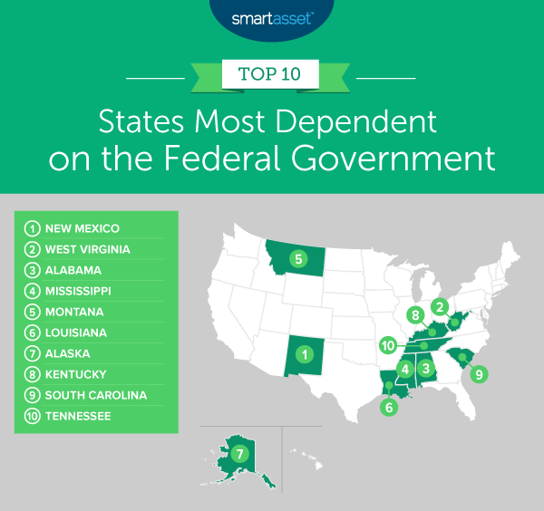Source: https://smartasset.com/taxes/states-most-dependent-on-the-federal-government-2020